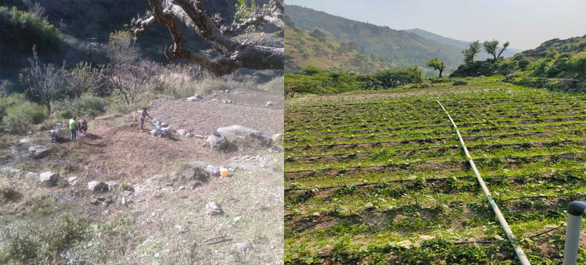 We would like to introduce our ongoing project i.e. Collective Farming. In collective farming, multiple farmers gave their unutilized land on lease for agricultural and miscellaneous farming practices, generally farmers adopt two types of agricultural practices i.e., rain fed and irrigated. Irrigation mostly available in plains and valleys. So we need to generate alternate sources of irrigation to increase the crop intensity of the state and as well as employment for the local people. The main motive of this project to introduce farmers about new irrigation and agriculture techniques. Collective Farming is amalgamation of various farming concepts such as Orchards of Fruits & Floriculture, Cultivation of Vegetables & Pulses, Goatry Farming, Pisciculture (Fish Farming), Apiculture (Honey Bee Keeping), Agro tourism and many others.